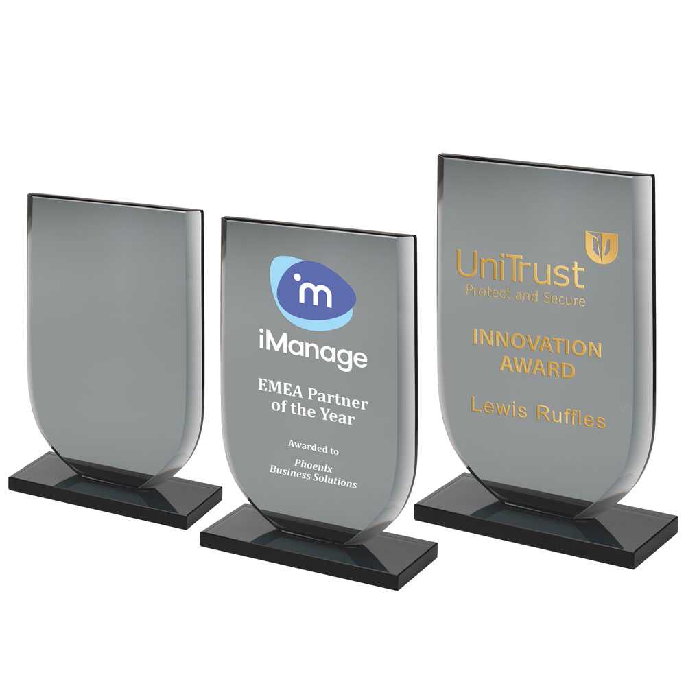 Smoked Black Glass Shield Plaque (10mm Thick) - 6.75in
