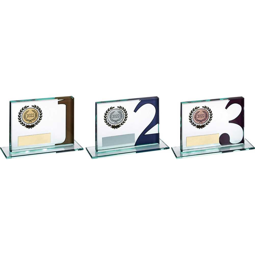 Jade Glass Plaque With Wreath 12mm Thick (1in Centre) Gold 1st - 3.25 X 4in