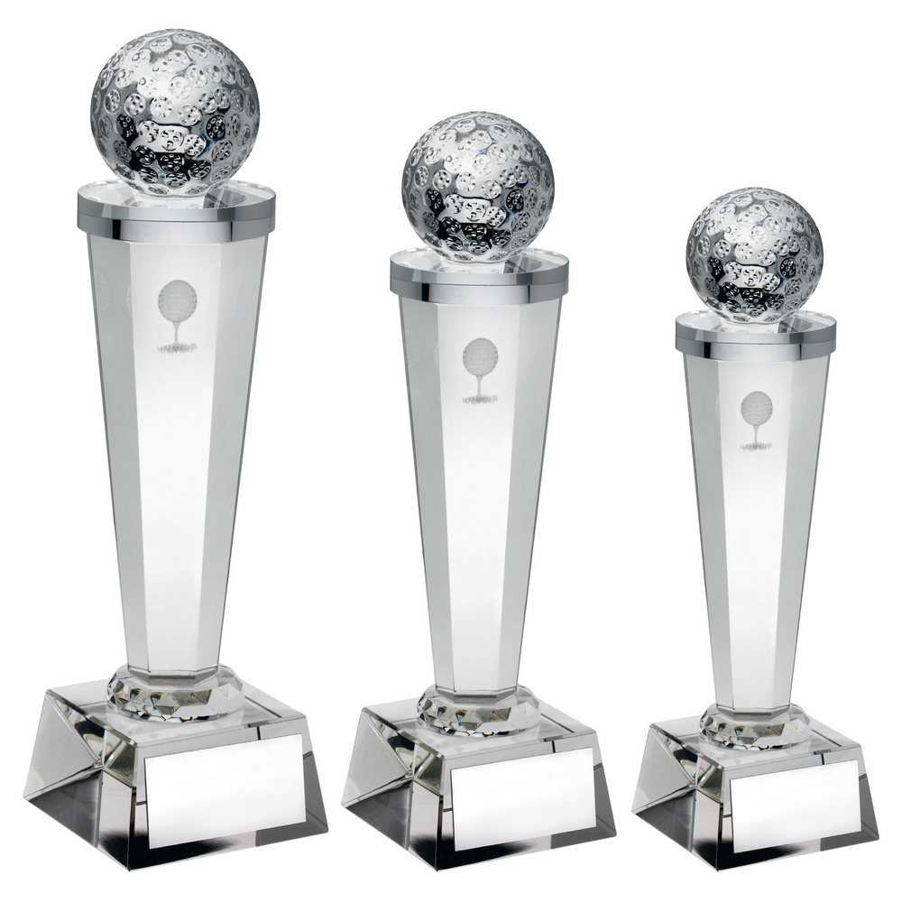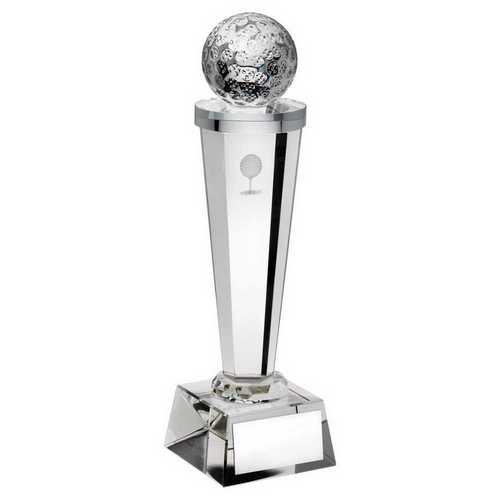Clear Glass Column With Lasered Golf Image - 8.5in