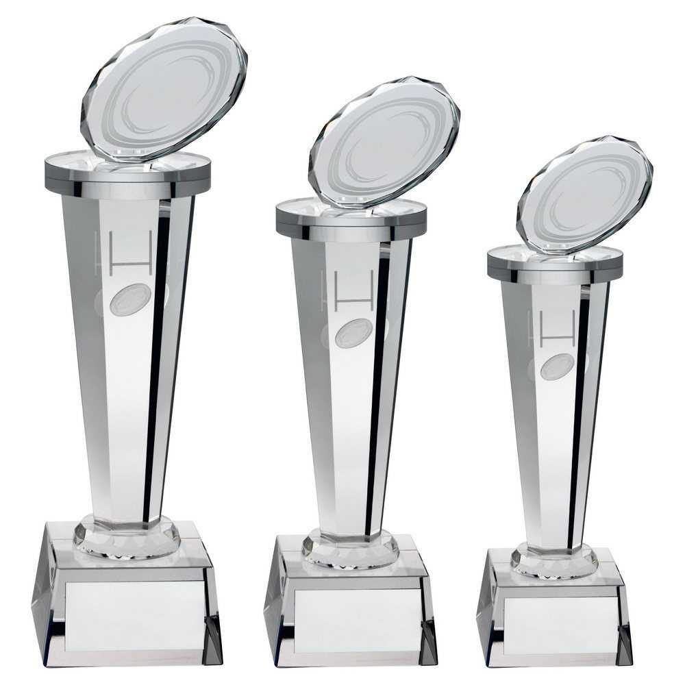 Clear Glass Column With Lasered Rugby Image - 10.75in