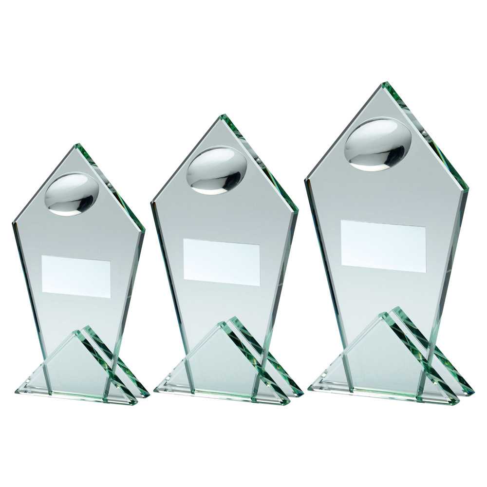Jade Glass Pointed Plaque With Half Rugby Ball - 8.5in