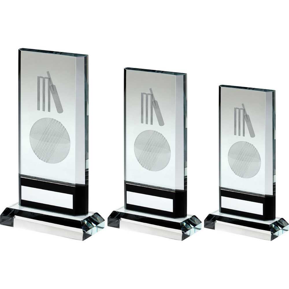 Clear|black Glass Plaque With Lasered Cricket Image (15mm Thick) - 6.75in
