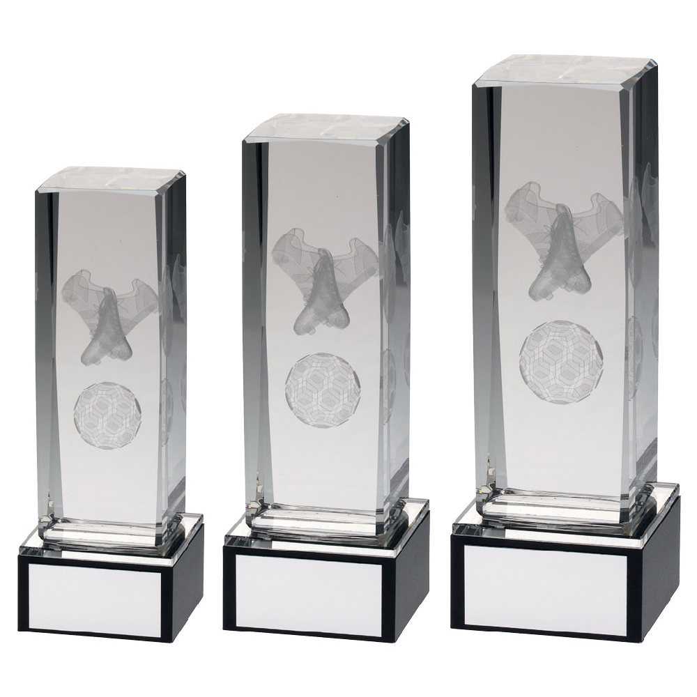 Clear Glass Lasered Football Column On Black Base - 7.5in