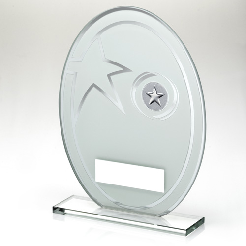 White|silver Printed Glass Oval With Wreath Design (1in Centre) - 7.25in
