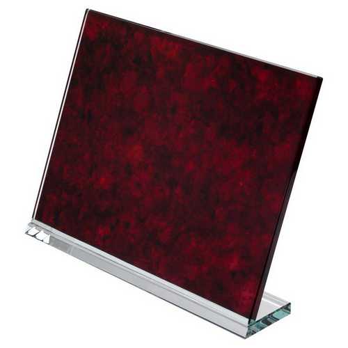 Red Marble Backed Clear Glass Landscape Plaque - 7.5 X 9.5in